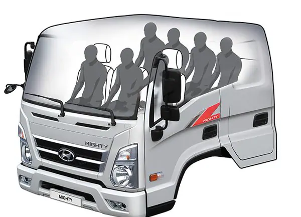 Aunque es un camión de trabajo, el Hyundai Mighty EX6 DC cuida al conductor y a la cuadrilla con un equipamiento muy completo: