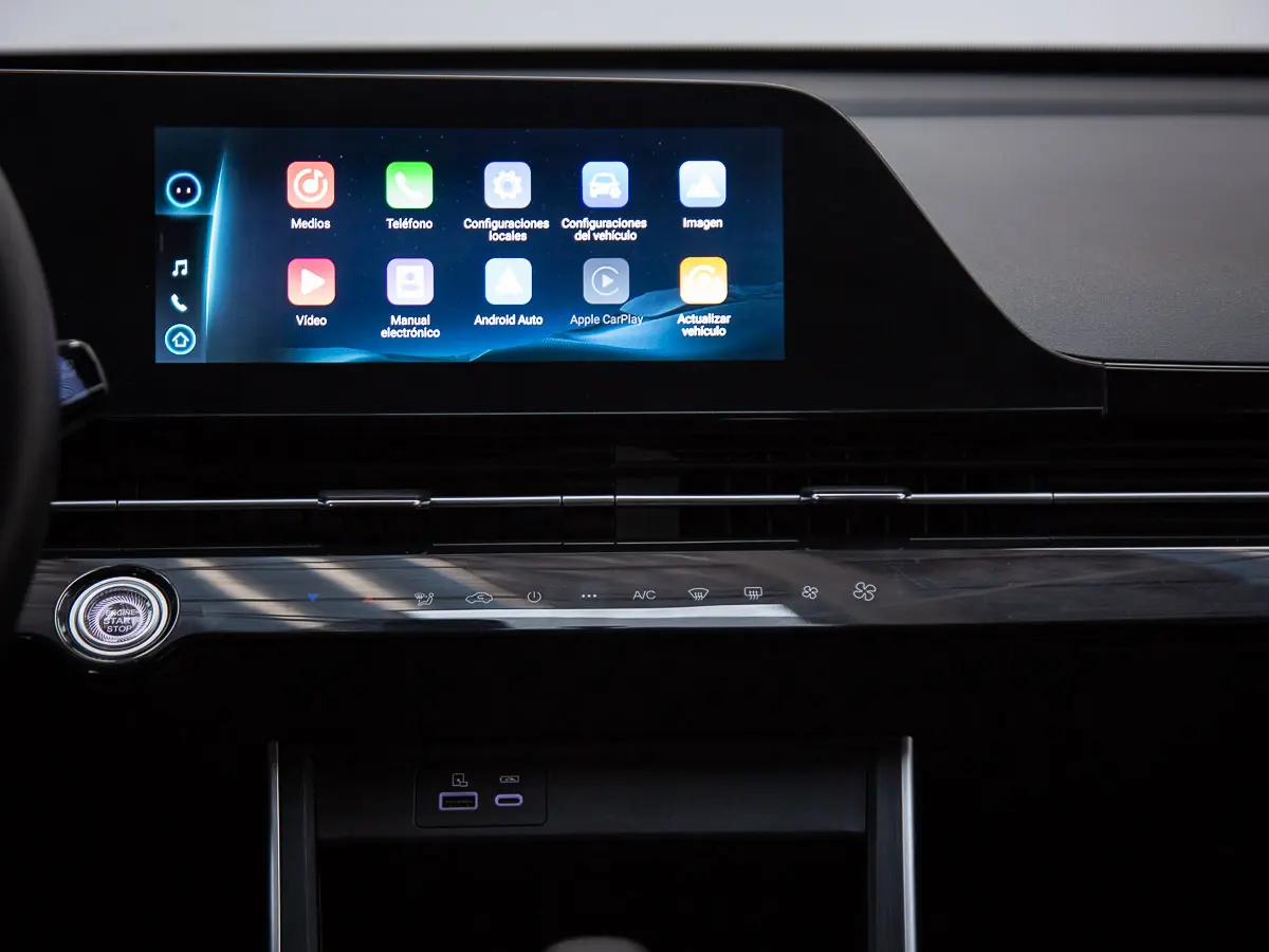 Aire acondicionado, climatizador, alzavidrios eléctricos delantero y trasero, radio con control al volante, bluetooth, volante regulable, volante tapiz cuero, velocidad crucero computador a bordo, Android CarPlay, espejos exteriores eléctricos y retractiles, asientos eléctricos, asiento trasero abatible, apertura de maleta desde el interior, partida botón start stop.
