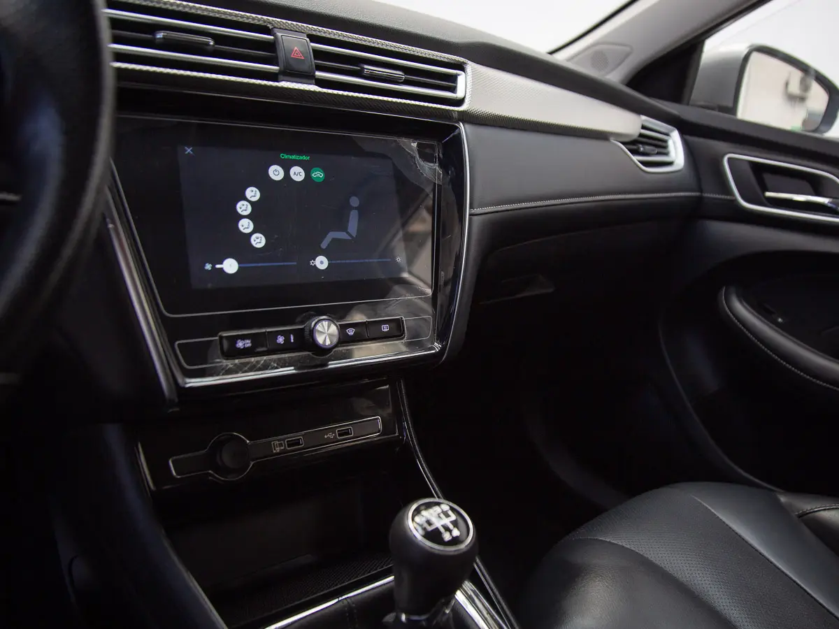 Aire acondicionado, alzavidrios eléctricos delantero y trasero, radio con control al volante, Bluetooth, volante regulable y tapizado en cuero, Android CarPlay, espejos exteriores eléctricos y asiento trasero abatible.