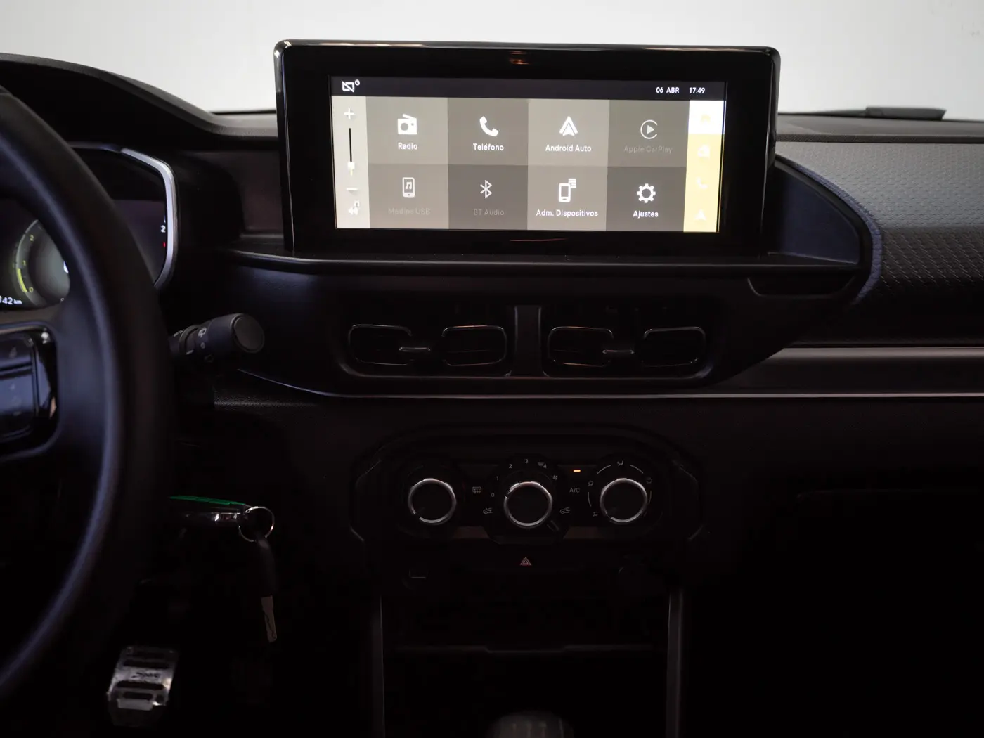 Aire acondicionado, alzavidrios eléctricos delantero y trasero, radio con control al volante, Bluetooth, volante regulable, Android CarPlay, espejos exteriores eléctricos y asiento trasero abatible conforman su equipamiento general.
